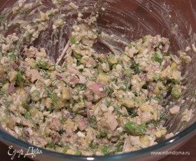 Крошим зелень, соединяем все.