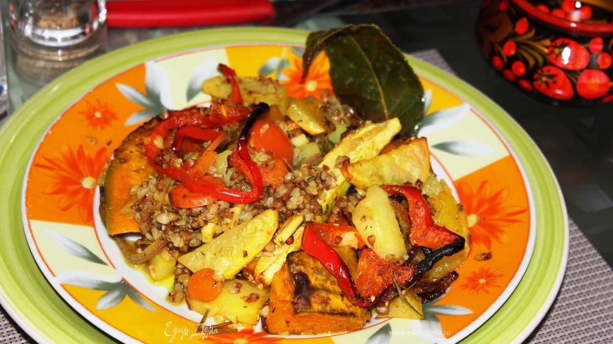 Вкуснейшие овощи, запеченные в духовке, могут стать гарниром или быть самостоятельным основным блюдом.Тыква просто тает во рту, а вкус гречи придает блюду домашний деревенский оттенок.