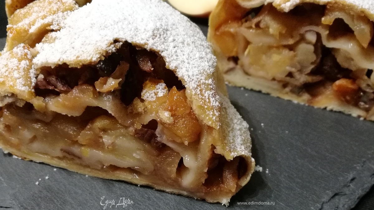 Вам не показалось, еще один яблочный штрудель. Ничего особенного: простое вытяжное тесто, много-много яблочной начинки, легко в исполнении, справится даже новичок. Удачной вам выпечки!