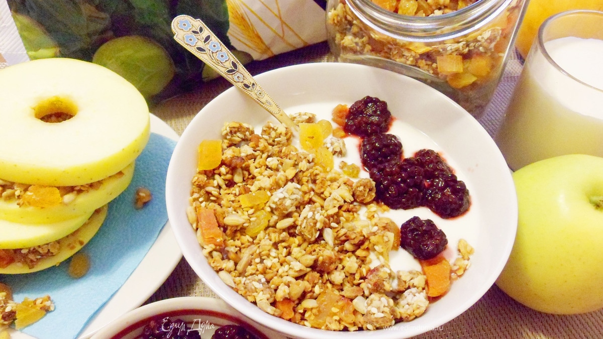 Домашняя гранола с отрубями готова. Приятного аппетита! Угощайтесь!