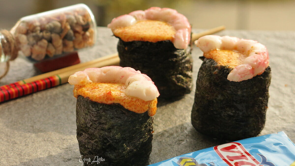Суши, запеченные со спайси соусом с крабовыми палочками