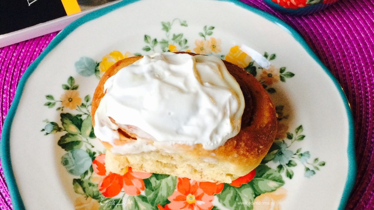 Для крема: миксером взбить сливочный сыр + 2 ст. л. ряженки + сахарную пудру. Булочки выпекать 25-35 минут. Готовые булочки слегка остудить на решетке и смазать кремом. - Шаг 7