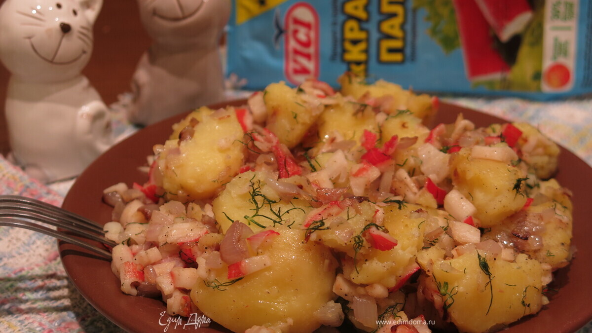 Очень простое и сытное блюдо. Картофель, обжаренный с крабовым мясом (крабовыми палочками). Рецепт из разрдяда «гости на пороге». Приятного!
