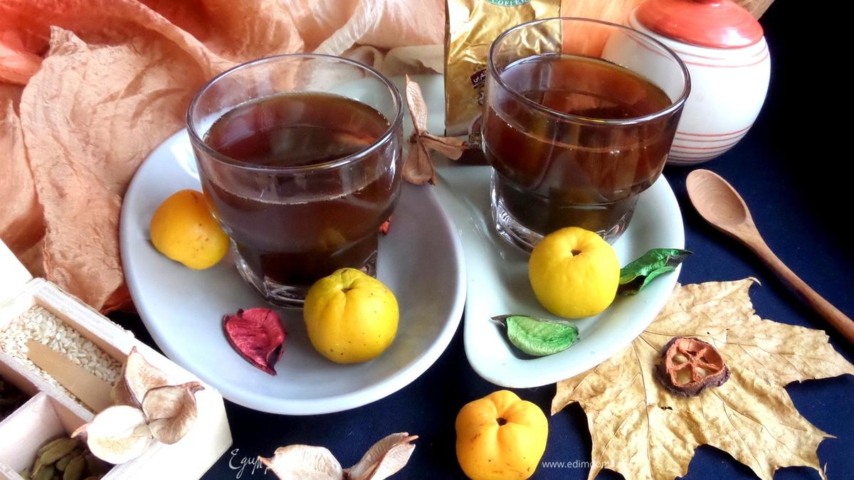 Разнообразим кофепитие таким интересным напитком. Много ароматов, хорошо согревает, пряный вкус. Напиток получился самодостаточный, не требует дополнения. Обладает противопростудными свойствами. Рецепт от МурКатеринка с моими добавлениями: заменила мtд сиропом, взяла цукаты вместо имбиря, исключила сахар.