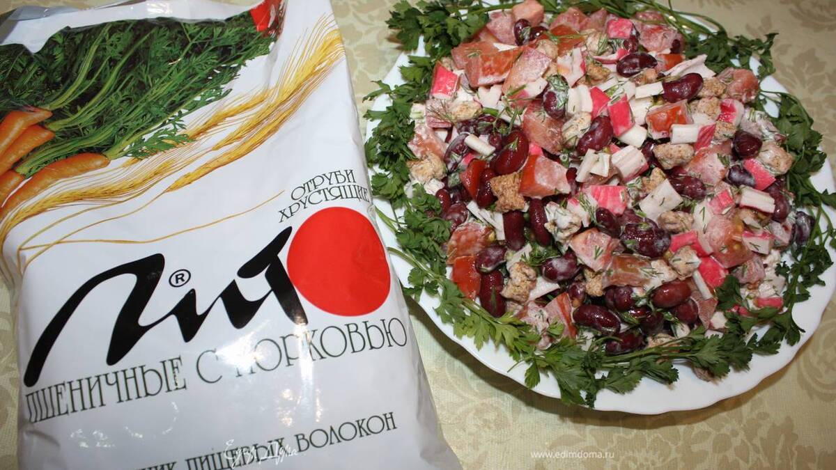 К помидорам и крабовым палочкам добавить красную консервированную фасоль (жидкость предварительно слить). - Шаг 5