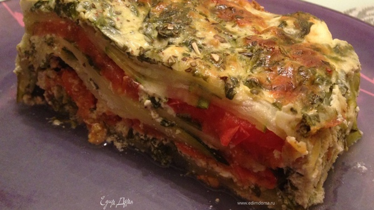 Затем снова цукини, творожная начинка, помидоры, цукини, творожная начинка. Сверху посыпать сушеным орегано. - Шаг 10