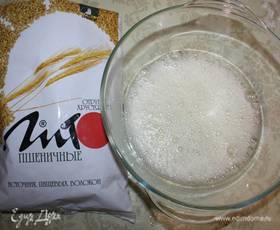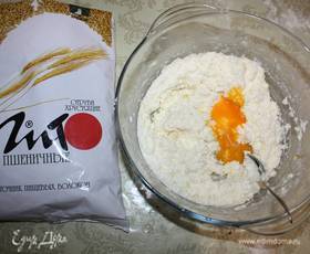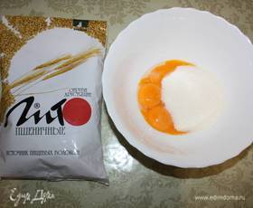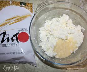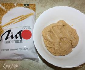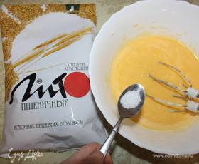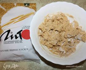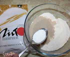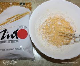Измельченные отруби смешиваем с пшеничной мукой. Добавим разрыхлитель.