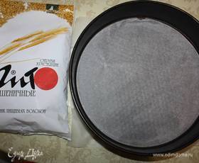 Дно разъемной формы (в данном случае диаметр формы 28 см) выстилаем пергаментной бумагой.