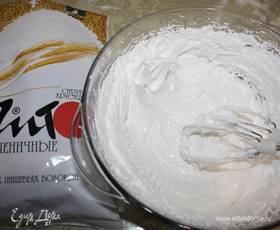 Взбить белки до мыльной пены (используя среднюю скорость миксера).