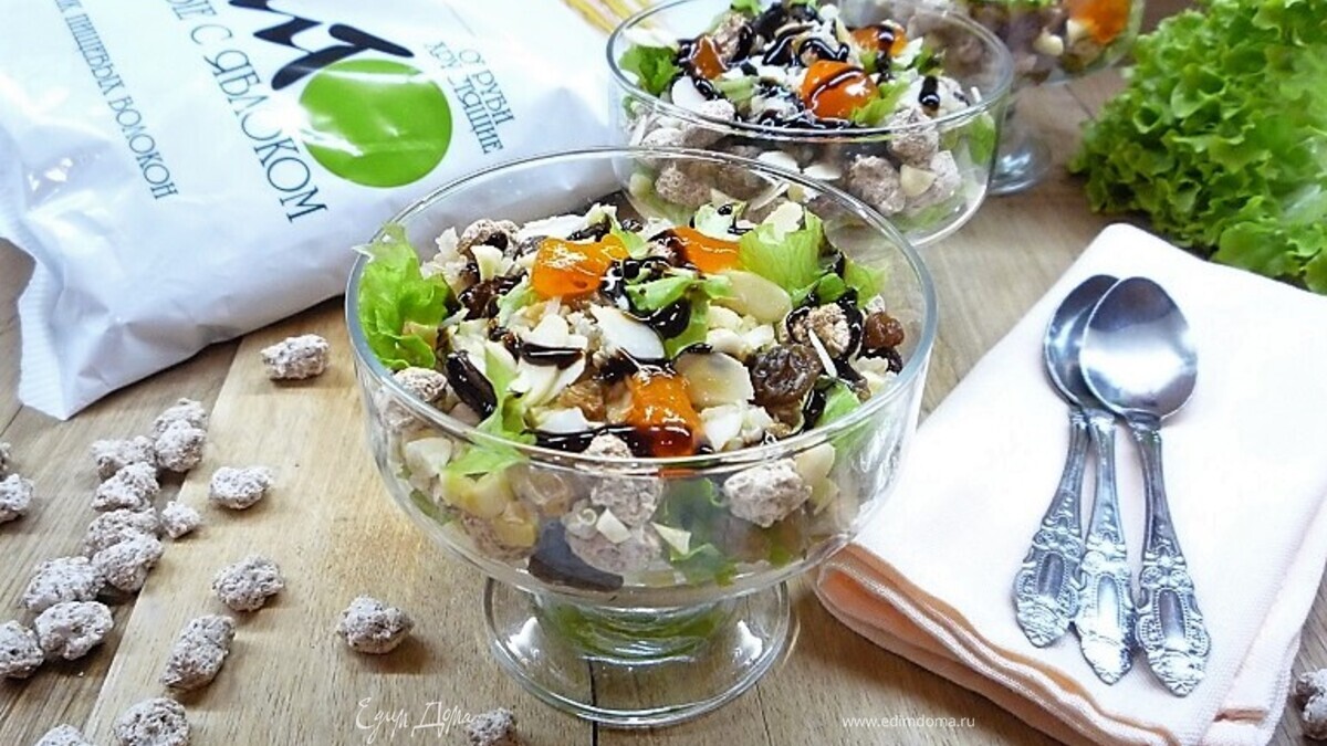 Витаминный фитнес-салат с киноа, отрубями и фруктами