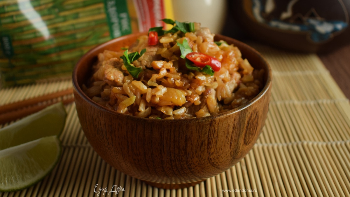 Сколько же рецептов жареного риса я перепробовала... И всегда получается вкусно. Сегодня жареный рис с маринованной капустой и свининой. Мясо можно взять любое — курицу или говядину, главное брать филейные части, которые быстро приготовятся. А рис взяла коричневый, чтобы не только вкусно, но и полезно было.
