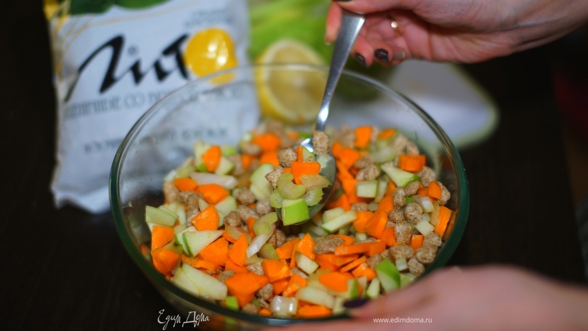 Добавляем пшеничные отруби ТМ «Лито». Я использовала отруби с лимоном, но подойдут с любым вкусом. Без отрубей этот салат будет не такой сытный! - Шаг 9