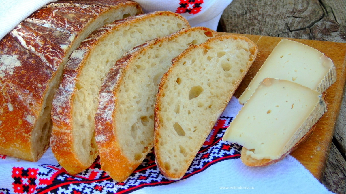 Разрезайте острым ножом :) Это корочка еще горячего хлеба, не удержалась :) Вкусного вам хлеба!!!