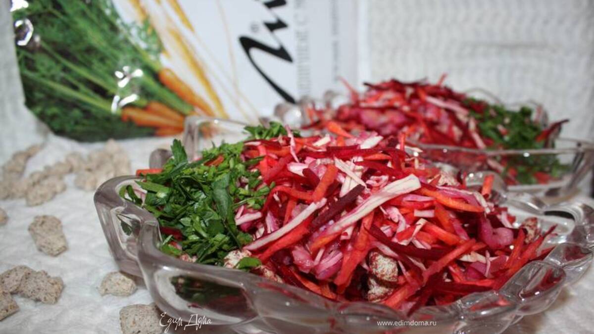Перед подачей на стол перемешать, разложить по вазочкам, украсть зеленью.