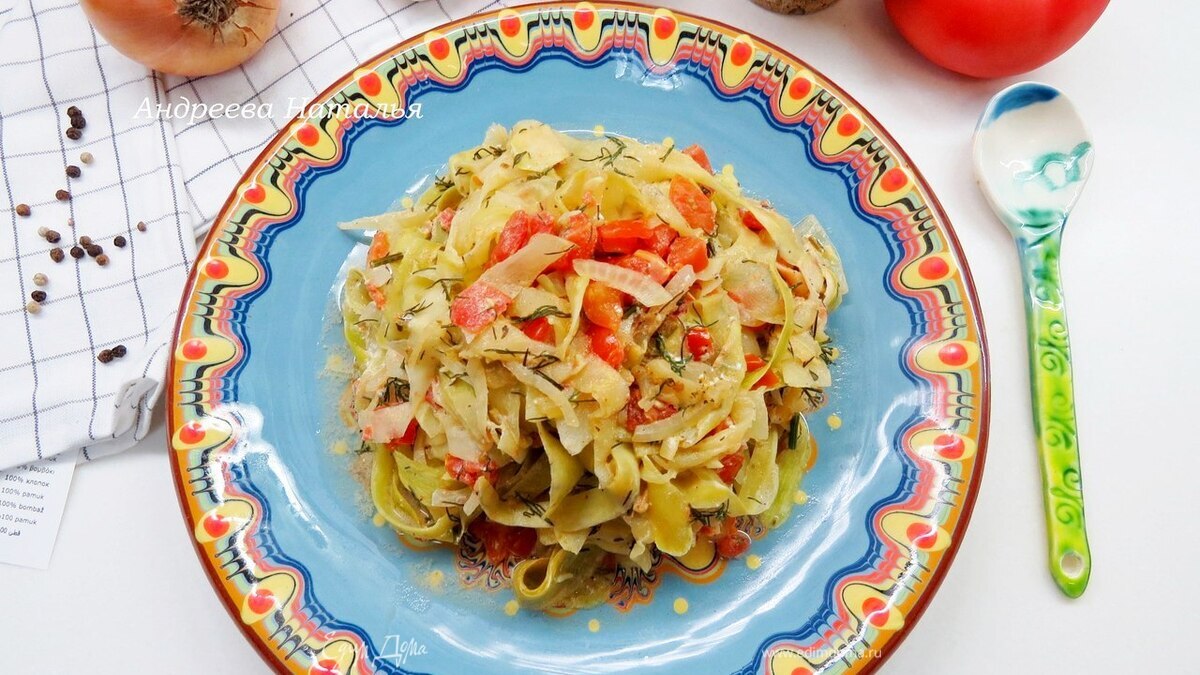 Вкуснейшие кабачки, по виду напоминают знаменитую итальянскую пасту паппарделле. Это легкое, вкусное и полезное блюдо — частый гость на нашем столе в сезон кабачков.