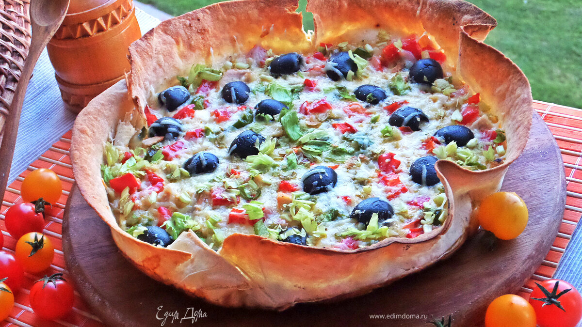 Я и раньше вас знакомила с идеями запечь начинку в лаваше. Сегодня предлагаю теплый завтрак для любителей омлета: с пикантными добавками и сытной курочкой. Нарезается как пирог, удобно взять с собой на работу перекусить. Хорошо держит форму, только краешки очень хрупкие после запекания, их удобно и вкусно отламывать. Чем ароматнее масло, тем вкуснее будет.