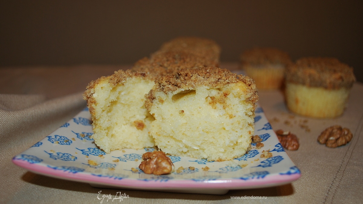Посыпаем сверху ореховой крошкой. За счет сахара мусковадо и ореховой пасты вкус у шапочки будет орехово-карамельно-сливочной. Выпекаем в разогретой духовке при 170°С в течение 40 минут. - Шаг 10