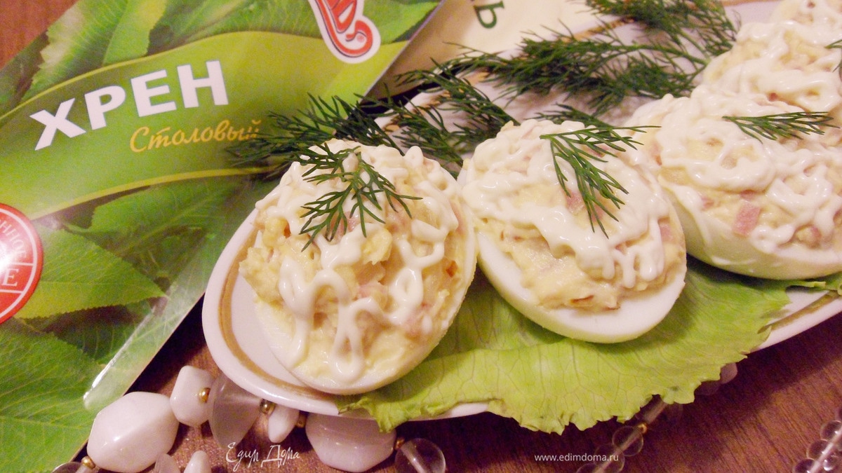 Яйца, фаршированные ветчиной и хреном