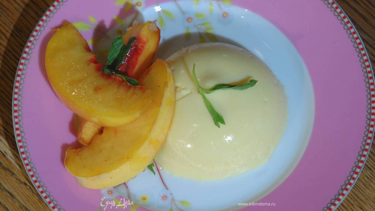 Охлажденную панна котту подавать с персиками.