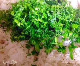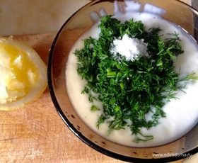 Теперь добавляем в соус порезанный укроп и морскую соль.