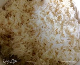 У меня была головка цветной капусты 530 г, я натерла на мелкой терке половину, значит, где-то 215 г.