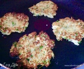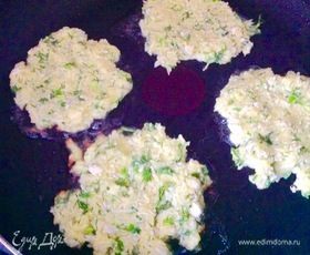 1 ст. ложку оливкового масла нагреваем на сковороде а/п. И выкладываем ложкой драники.