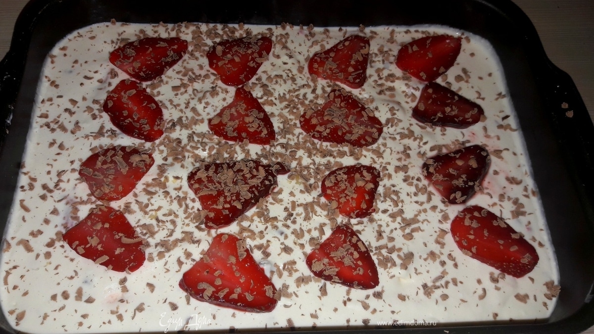 Клубнику нарезать слайсами и маленькими кусочками. Часть шоколада измельчить. - Шаг 4