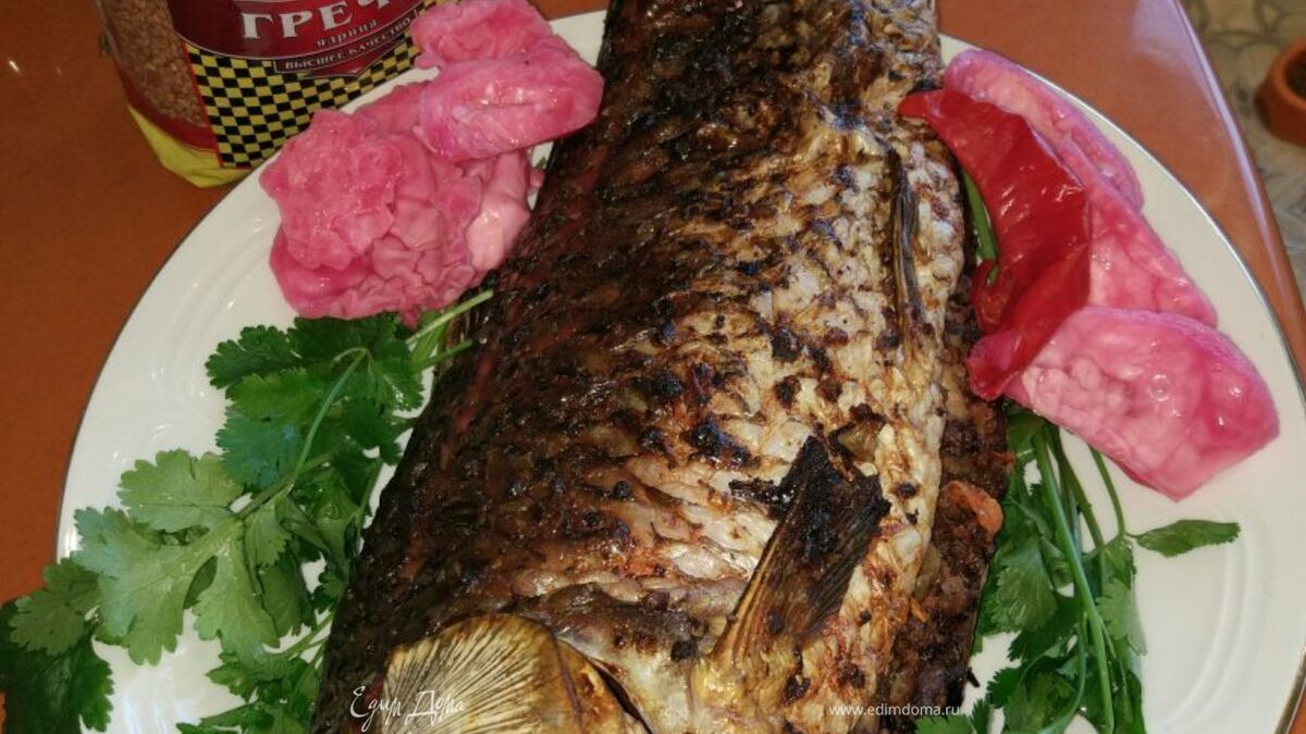 Сазан, запеченный с гречкой, по-астрахански