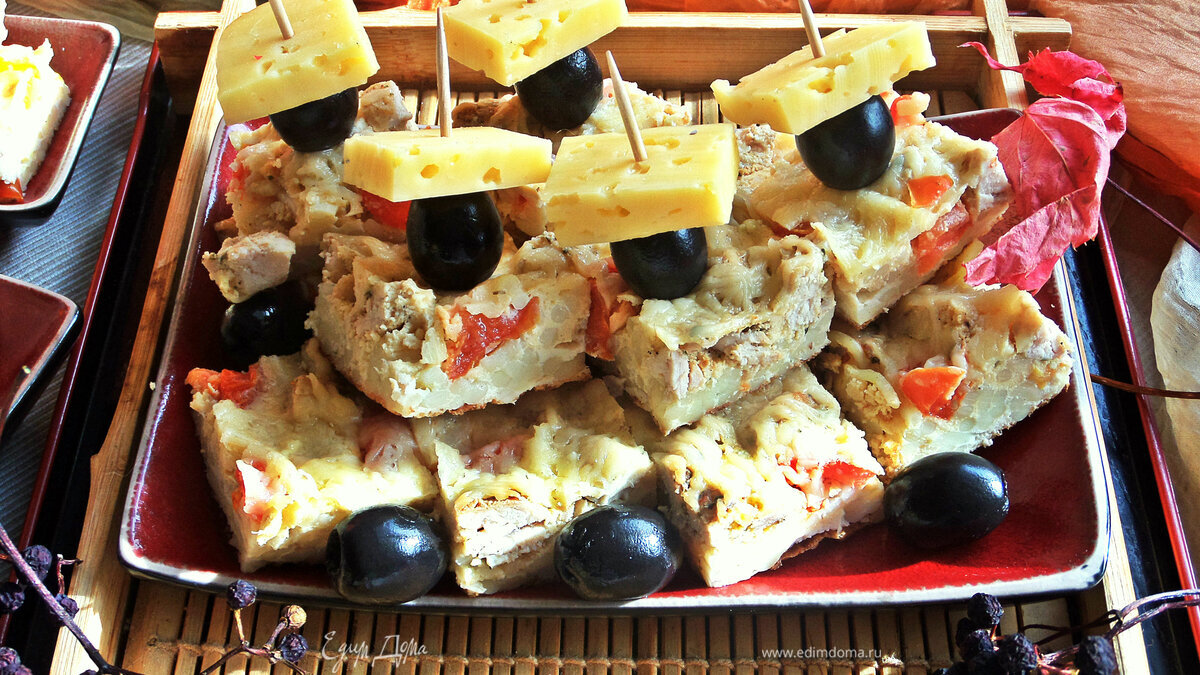 Посмотрим с юмором на старую добрую запеканку из оставшейся порции макарон и превратим ее в теплую закуску. Получается 20 квадратных «канапе». Конечно, на фуршет мы их не выставим, но в домашнем кругу вполне подойдут на перекус или ужин, ведь мы едим дома.