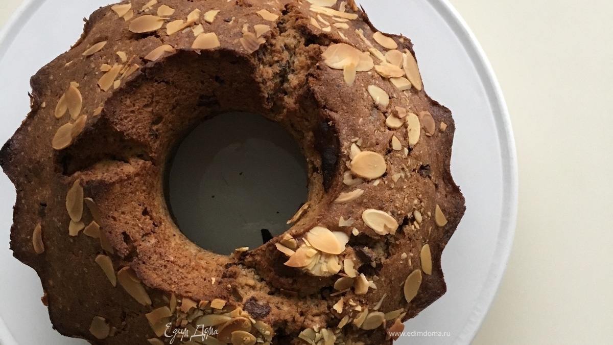 Форму для выпечки смазать маслом, выложить тесто. Можно сверху посыпать миндальными лепестками или молотыми орехами. Выпекать 45–55 минут.