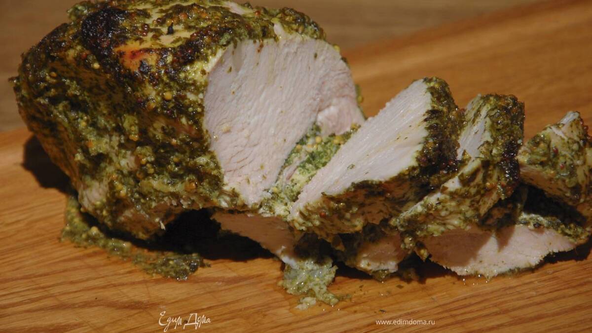 Мясо индейки диетическое: в нем нет жира, оно богато белком, это еда полезная, но нескучная. Из грудки индейки обычно готовят котлеты, а я предлагаю запечь ее целиком, и она получится сочной, а не сухой. Зеленый соус-маринад по-итальянски называется salsa verde, травки для него можно взять любые, например мяту заменить тархуном, вот только укроп, пожалуй, будет здесь слишком агрессивным. Мясо неплохо замариновать заранее и оставить на ночь или даже на сутки в холодильнике. Вместо вина в рукав для запекания можно добавить немного мясного или овощного бульона.