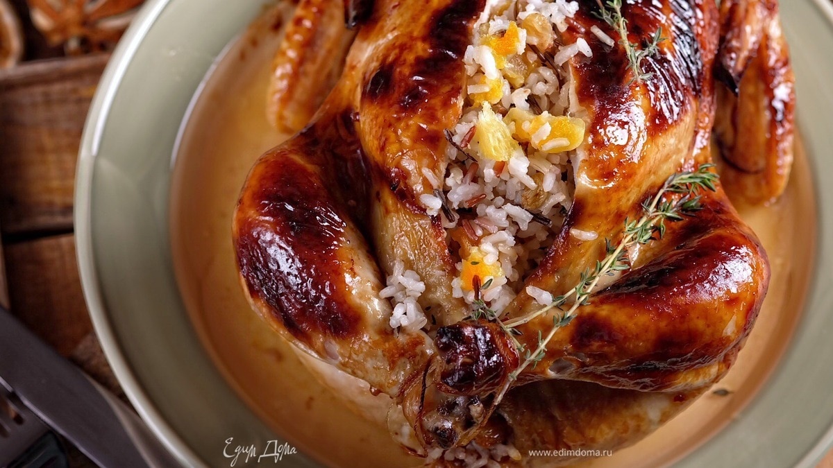 Курица, фаршированная рисом и сухофруктами