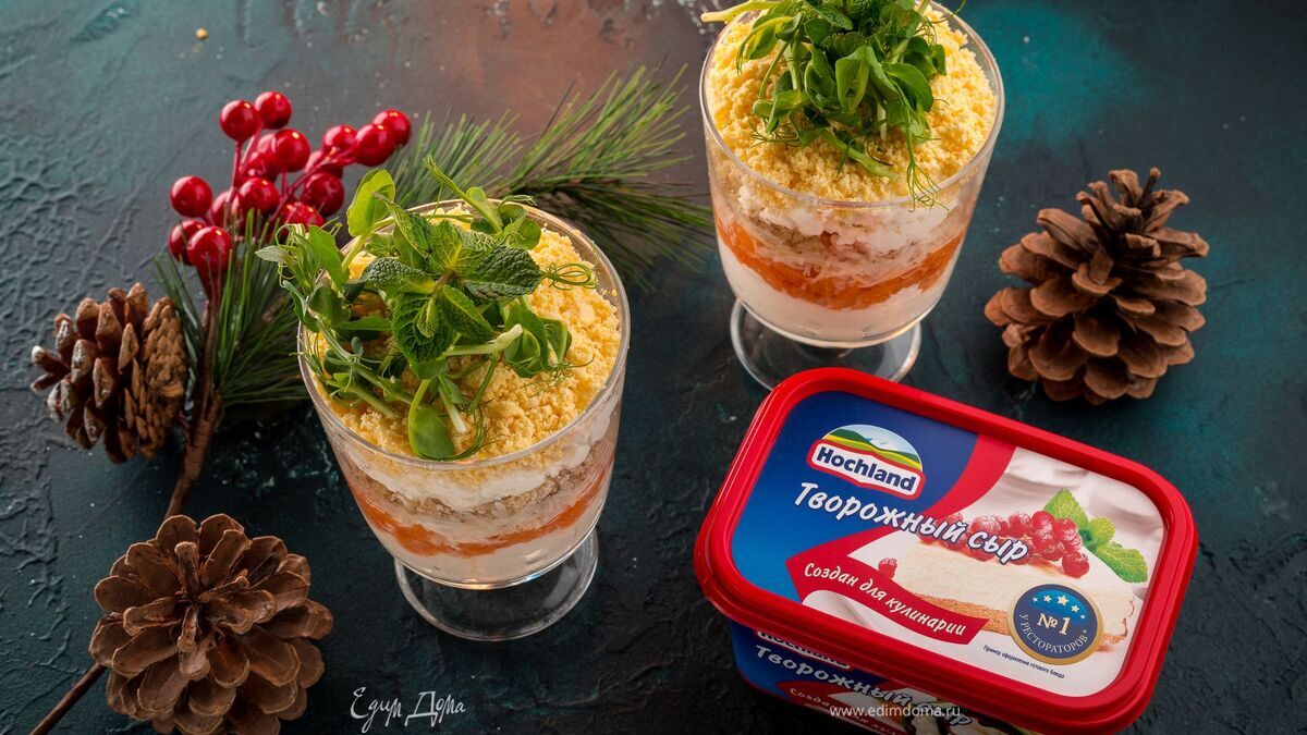 Смешайте с творожным сыром Hochland «Для кулинарии» и хреном.