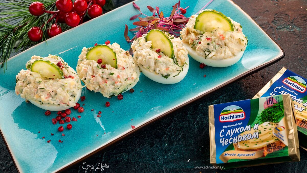 Фаршированные яйца с крабовыми палочками