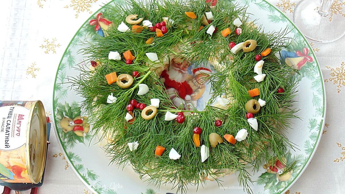Оливье с тунцом «Рождественский венок»