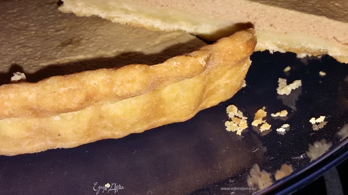 Духовку разогреть до 180°С. Тесто раскатать в тонкий пласт. Выложить в форму для запекания. Дно наколоть вилкой. Выпекать 10 минут. - Шаг 4