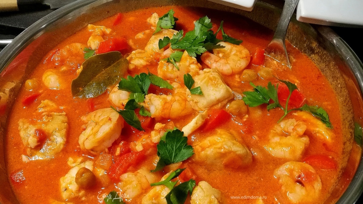 Айнтопф из рыбы и креветок насытит без вреда для вашей фигуры, ведь количество калорий в одной порции только 270, к тому же он очень вкусный! Присоединяйтесь!