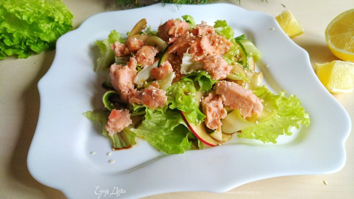 Доброго времени суток! Сегодня у меня день открытий и поистине Королевский завтрак по рецепту Юлии Высоцкой Салат из кабачка с огурцом, семгой и кунжутом. Салат получился удивительно вкусным и питательным.