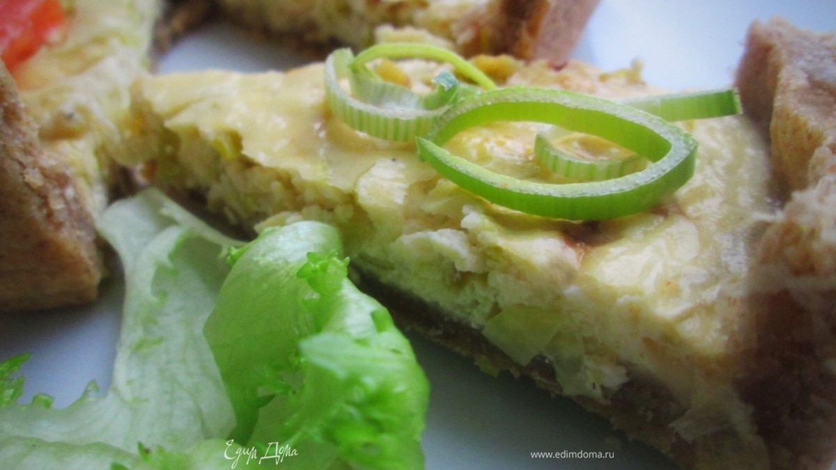 Пирог с творогом, брынзой и луком-пореем