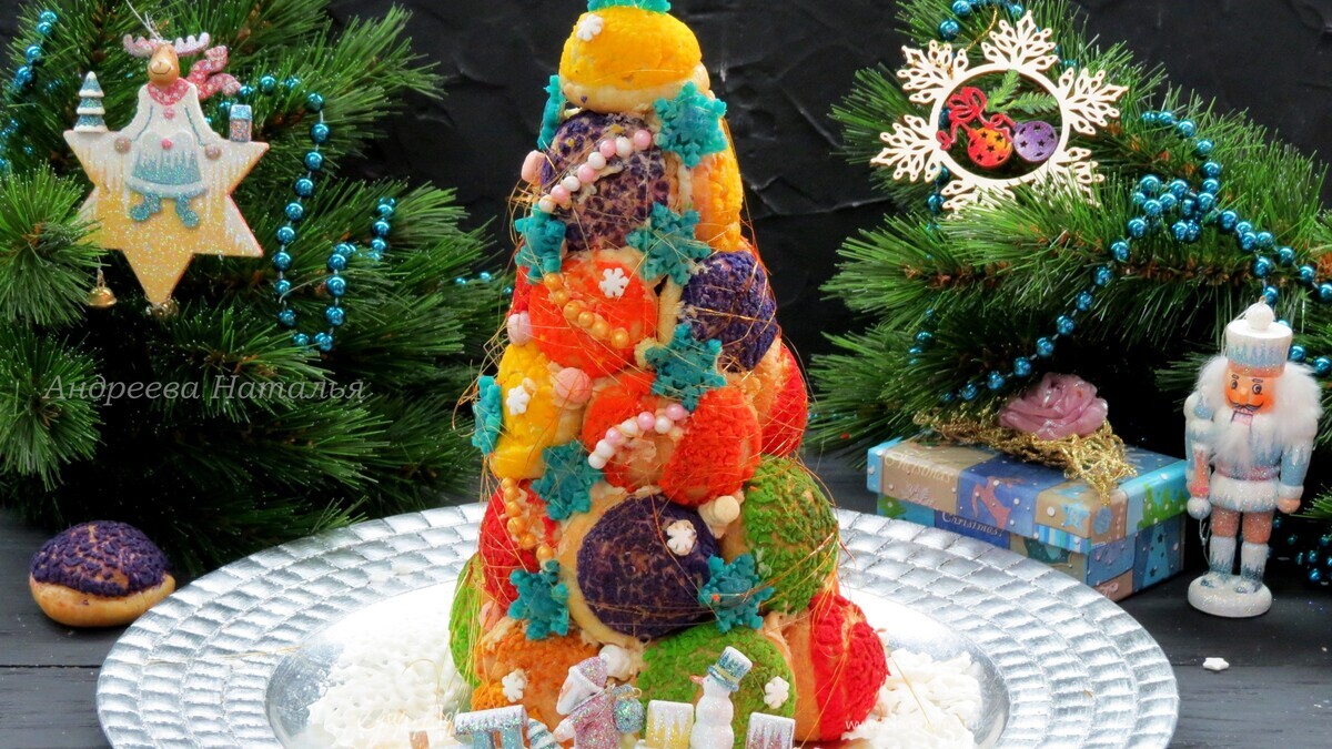 Елочка из пирожных «шу» с пломбирным кремом