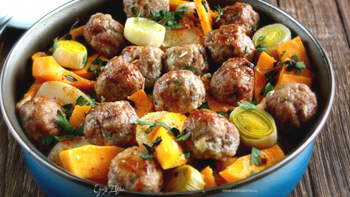 Сливки в сотейнике довести до кипения на маленьком огне и залить ими овощи и фрикадельки. (Полить каждую фрикадельку.) Запекать овощи в течение 45–55 минут. Ориентируйтесь на готовность картофеля.