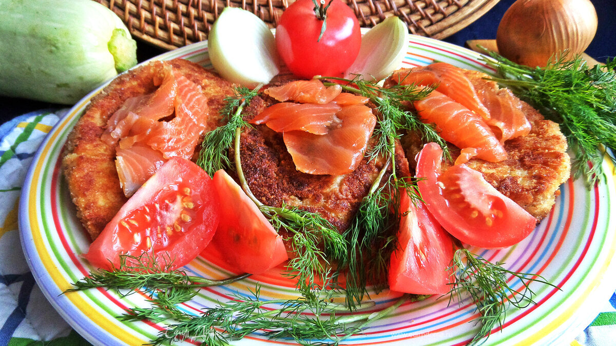 Не знаю, как вы, но я могу начать утро с чего-то рыбного и закончить день тоже рыбным блюдом, поэтому постоянно придумываю рецепты овоще-рыбные. Праздники тоже не исключение: побалуем себя подкопченой красной рыбой и такими нежными котлетками необыкновенной вкусноты с начинкой. Подавать можно и детям (исключить чеснок). Всего 8 котлет, по 2 на порцию.