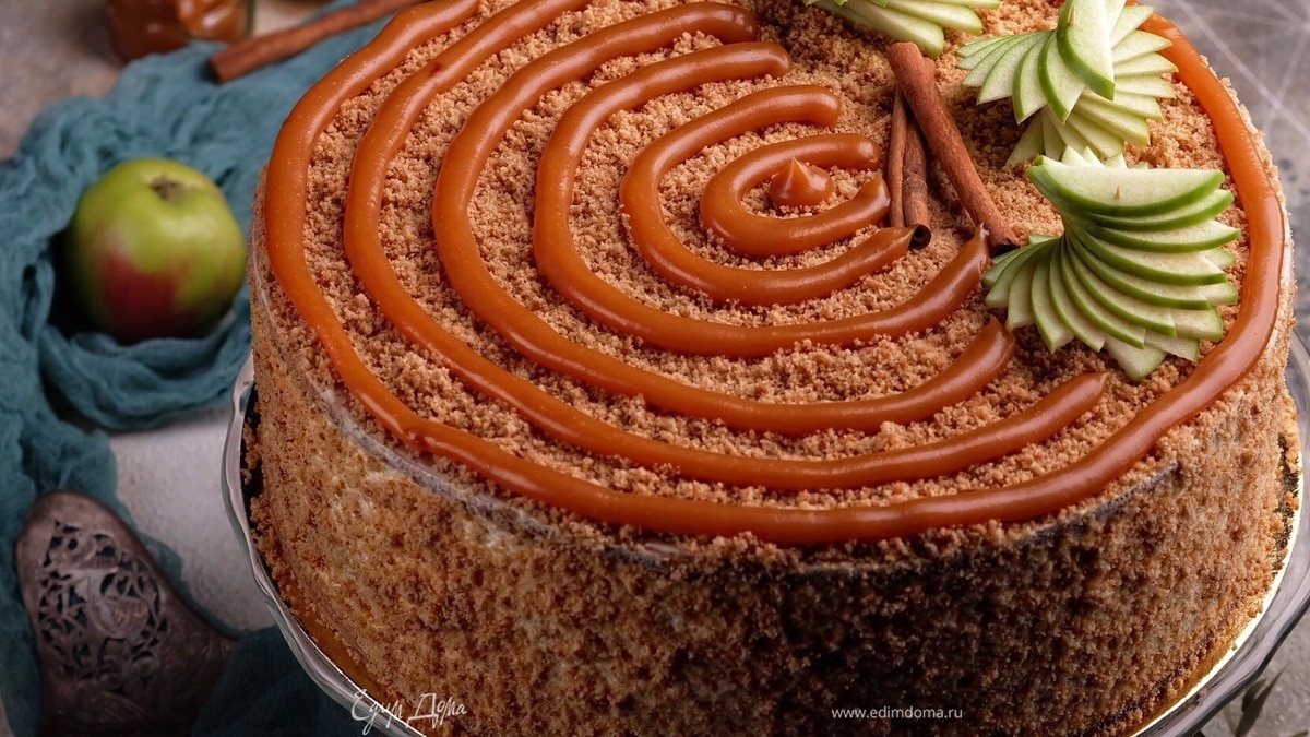 Без преувеличения скажу, что это мой самый любимый торт! Он совершенно неприторный и обладает таким деликатным и изысканным вкусом, что хочется в очередной раз сказать «спасибо» великому Пьеру Эрме и его рецепту, по мотивам которого я сделала этот торт. В состав этого торта входит: мягкий и практически невесомый бисквит, карамелизированные яблоки с корицей, карамельный баварский мусс с корицей и необычное песочное тесто с корицей и ромом. От себя я добавила декор из карамельного соуса — по-моему, он просто идеально вписался в этот чудесный вкусовой союз. Приготовим его вместе?