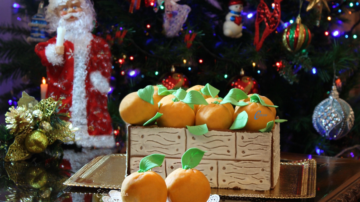 Мне кажется, что у большинства людей Новый год ассоциируется не только с елкой, гирляндами, предновогодней суетой, но и с запахом мандарин! В новогодних подарках мы всегда находили эти ароматные фрукты. Для меня это запах детства. Поэтому, чтобы не нарушать многолетнюю традицию, я решила на Новогодний стол поставить целый ящик цитрусовых! Предполагаю, что такой тортик приятно удивит и порадует родных.