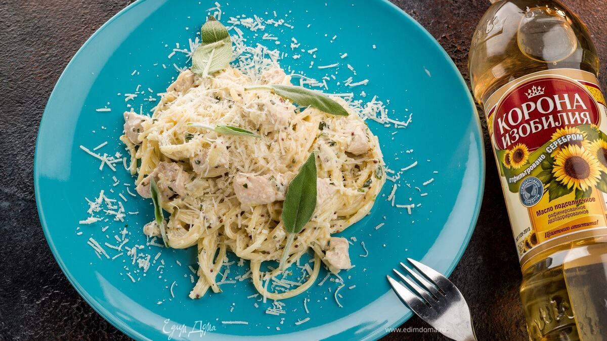 Выложите спагетти на сковороду к курице. - Шаг 10