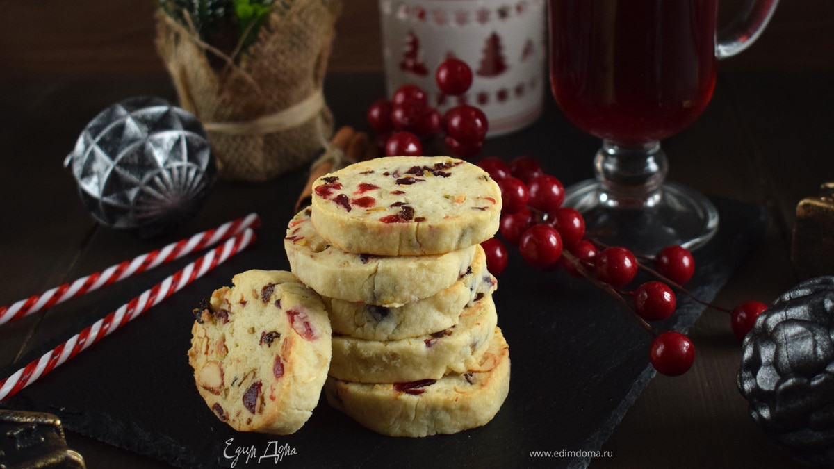 Яркое печенье с орешками и ягодами уже своим видом поднимает настроение. Лимон дает приятную кислинку, а вяленая клюква и вишня — сладость. Готовить очень просто, главное — дать тесту спокойно полежать в холодильнике, чтобы печенье вышло ровным.