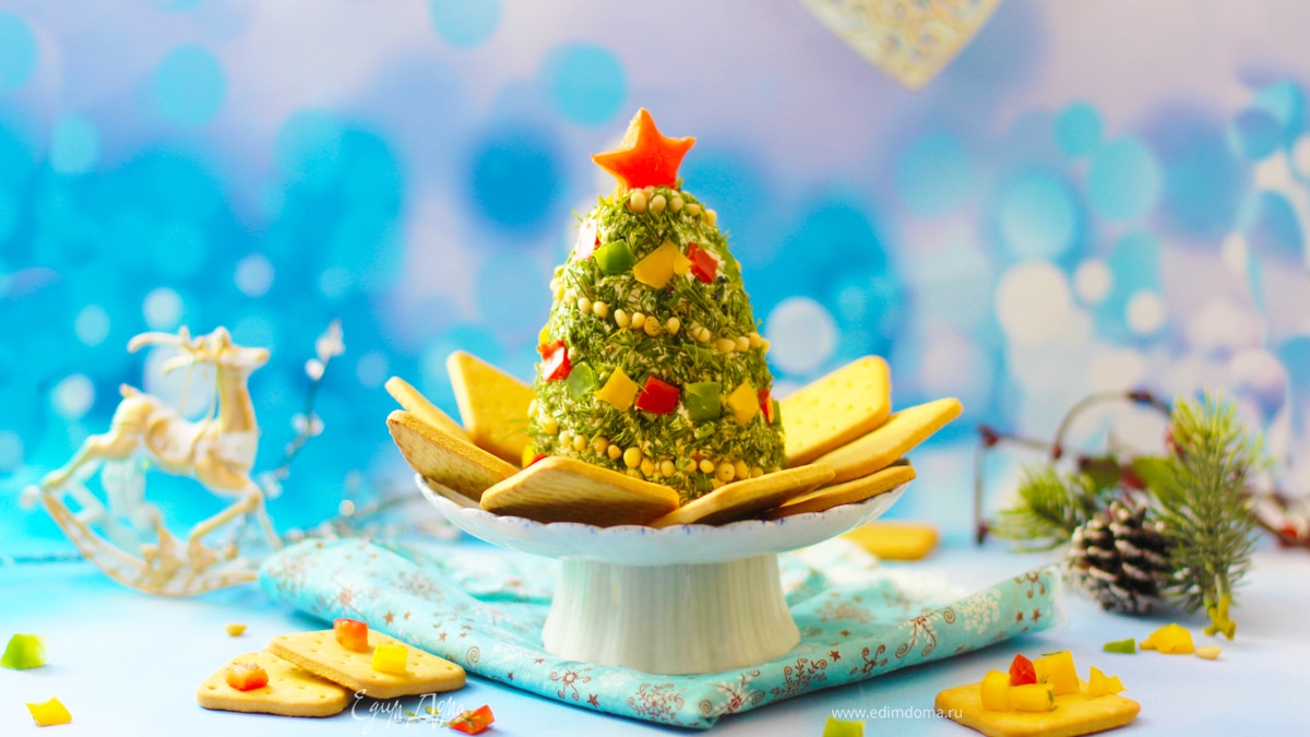 Превратите сырный шар с чесноком и зеленью в рождественскую