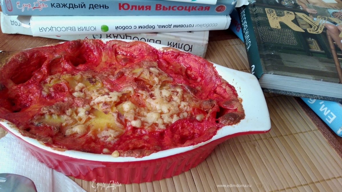 В этот раз мне досталось вкуснейшее задание. Картофельный гратен моя семья любит давно, а вот такой со свеклой, да с ароматной сливочной заливкой пробовали впервые! А какой цвет получился! Ну и тут как-то само собой захотелось на фотогрфии использовать замечательные книги Юлии Высоцкой, которые у меня имеются. Похвастаться, так сказать))
