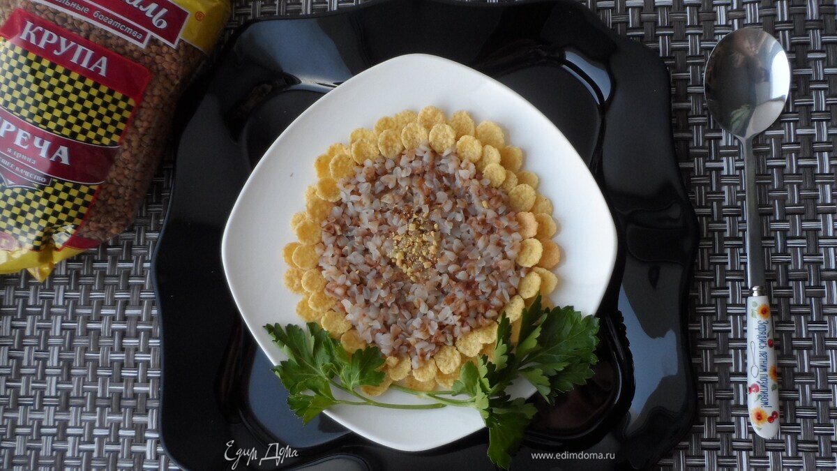 Крупу промыть. Воду довести до кипения, ввести туда гречку ТМ «Националь». Посолить, варить 15 минут до готовности. - Шаг 2
