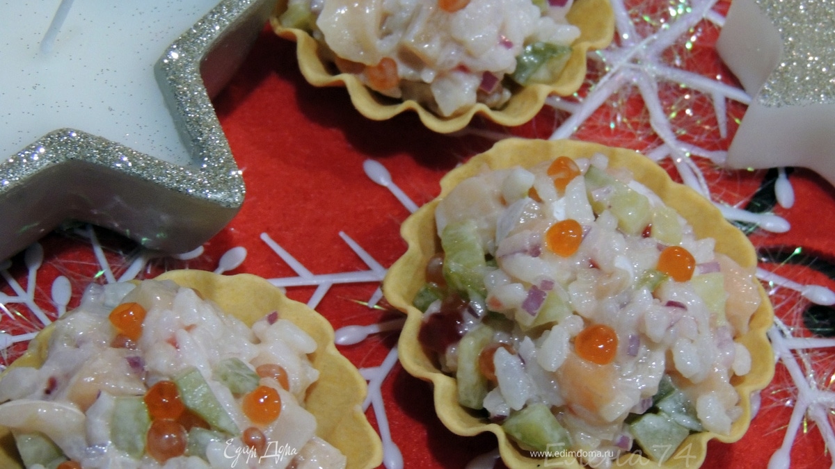 Для заправки соединяем по 1 ч. л. майонеза и джема ТМ «МахеевЪ». Заправляем и наполняем тарталетки. - Шаг 7